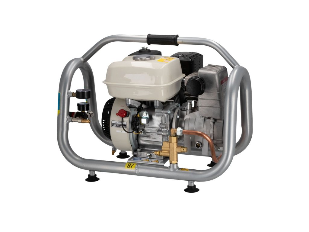 Mini spalovací kompresor BM 2.5-275 je lehké a kompaktní zařízení, vybavené spolehlivým motorem HONDA GP160. Je to ideální řešení pro práce v terénu, kde není přístup k elektrické energii. Díky malým rozměrům a vysokému výkonu se kompresor výborně hodí pro lehké a střední aplikace.