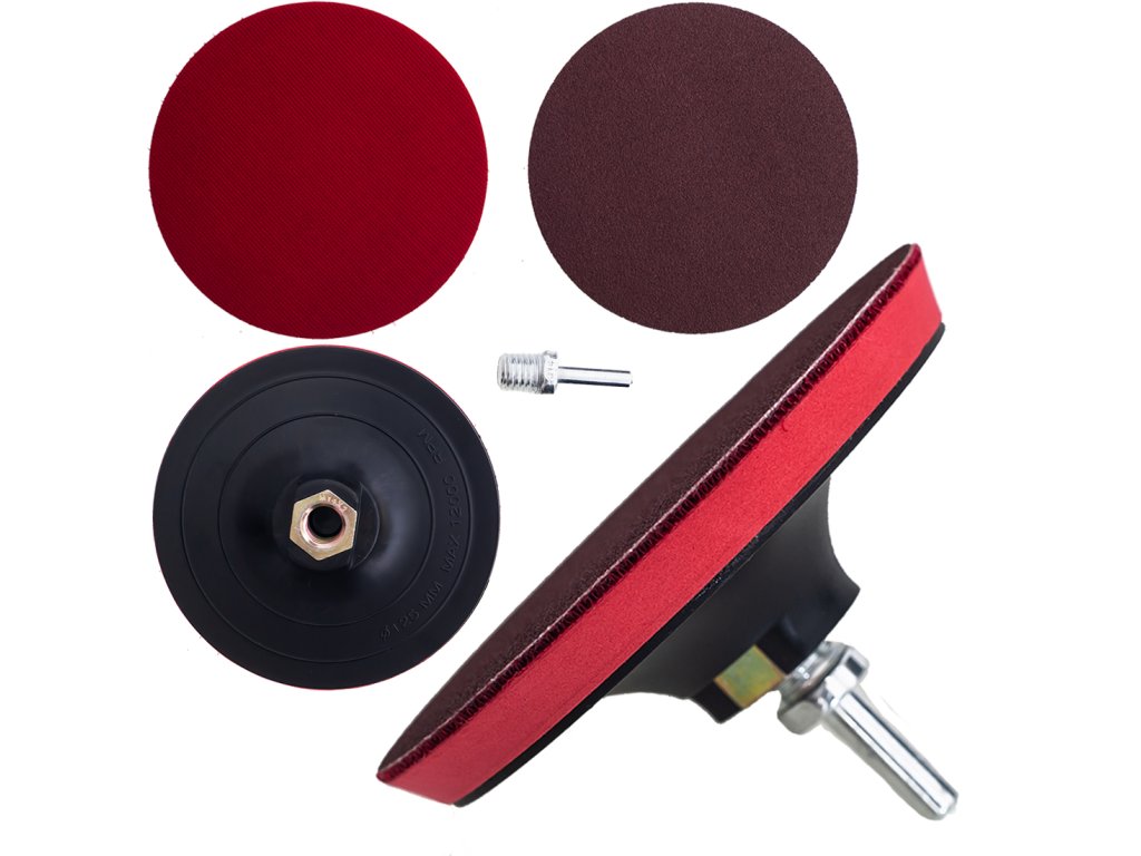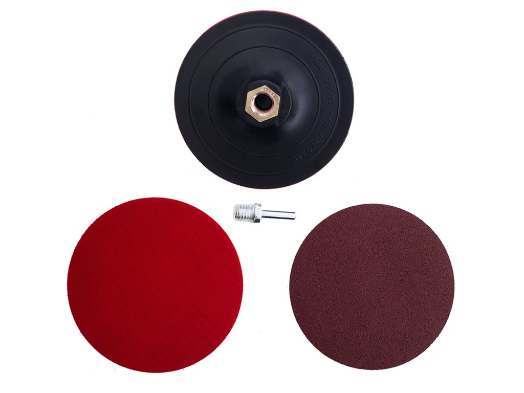 Jádro kotouče tvoří pěna pod suchým zipem, která usnadňuje broušení. V balení naleznete 3 brusné papíry a adaptér na vrtačku.