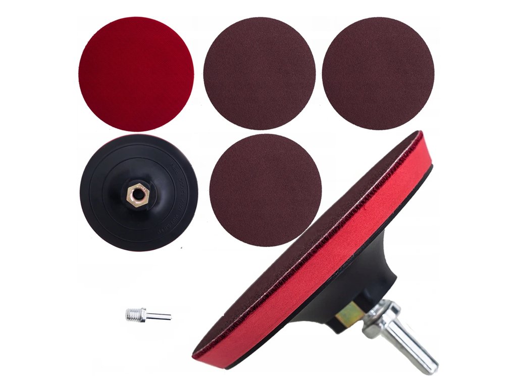 Srdcem kotouče je houba pod suchým zipem, která usnadňuje broušení. V sadě naleznete 3 brusné kotouče a adaptér na vrtačku.