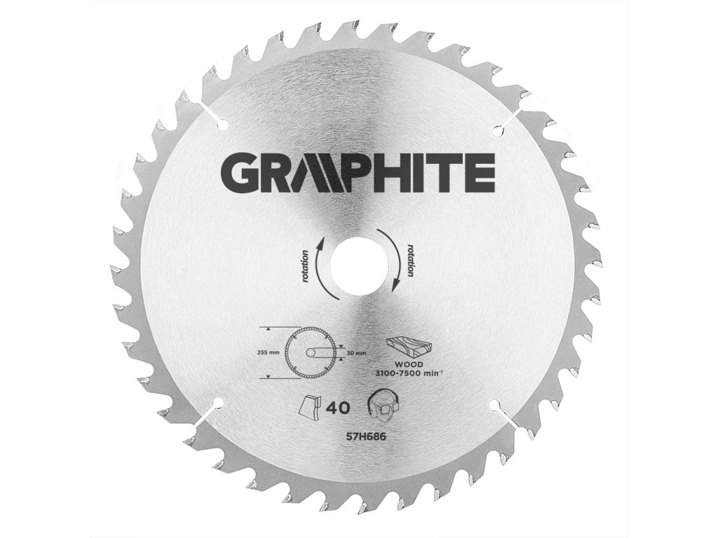 pilový kotouč GRAPHITE Widia (ref. 57H686) o vnějším průměru 255 mm, vyrobený ze slitiny manganové oceli MN65 s vysokou odolností vůči teplu a deformaci. Zuby s tvrdokovovými destičkami YG6A umožňují středně přesné řezání dřeva a materiálů na bázi dřeva, jako jsou překližky, dřevotřískové desky, MDF. Redukční kroužky, které jsou součástí balení, umožňují použití nože s většinou modelů pil.