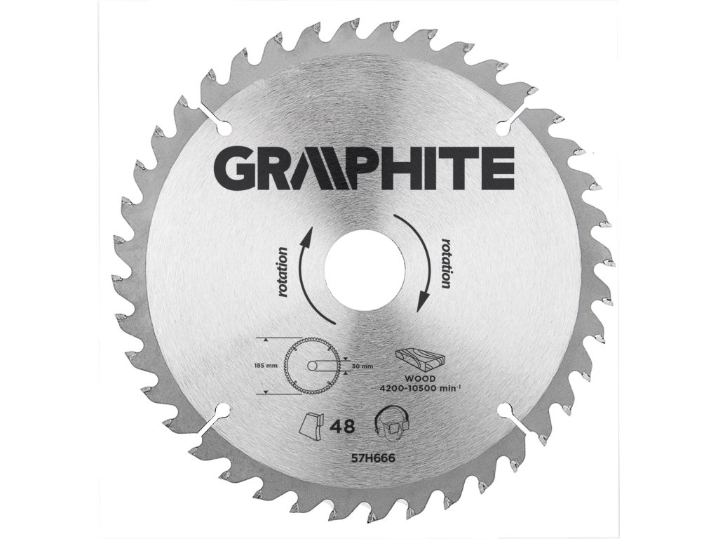 Vidlicový pilový list GRAPHITE (ref. 57H670) Vnější průměr 190 mm, vyrobený z manganové legované oceli MN65 s vysokou odolností vůči teplu a deformaci. Zuby s tvrdokovovými destičkami YG6A umožňují středně přesné řezání dřeva a materiálů na bázi dřeva, jako jsou překližky, dřevotřískové desky, MDF. Přiložené redukční kroužky umožňují použití listu s většinou modelů pil.