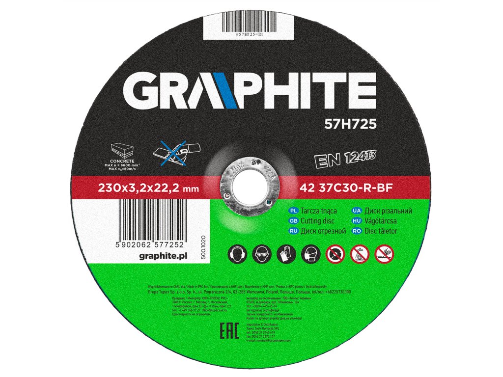 Řezací kotouč na kámen GRAPHITE díky pokročilé konstrukci a redukci tloušťky umožňuje významně snížit dobu řezání. Poskytuje vysokou úroveň bezpečnosti díky souladu výrobku s normou EN12413.