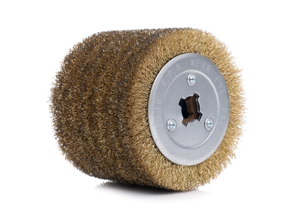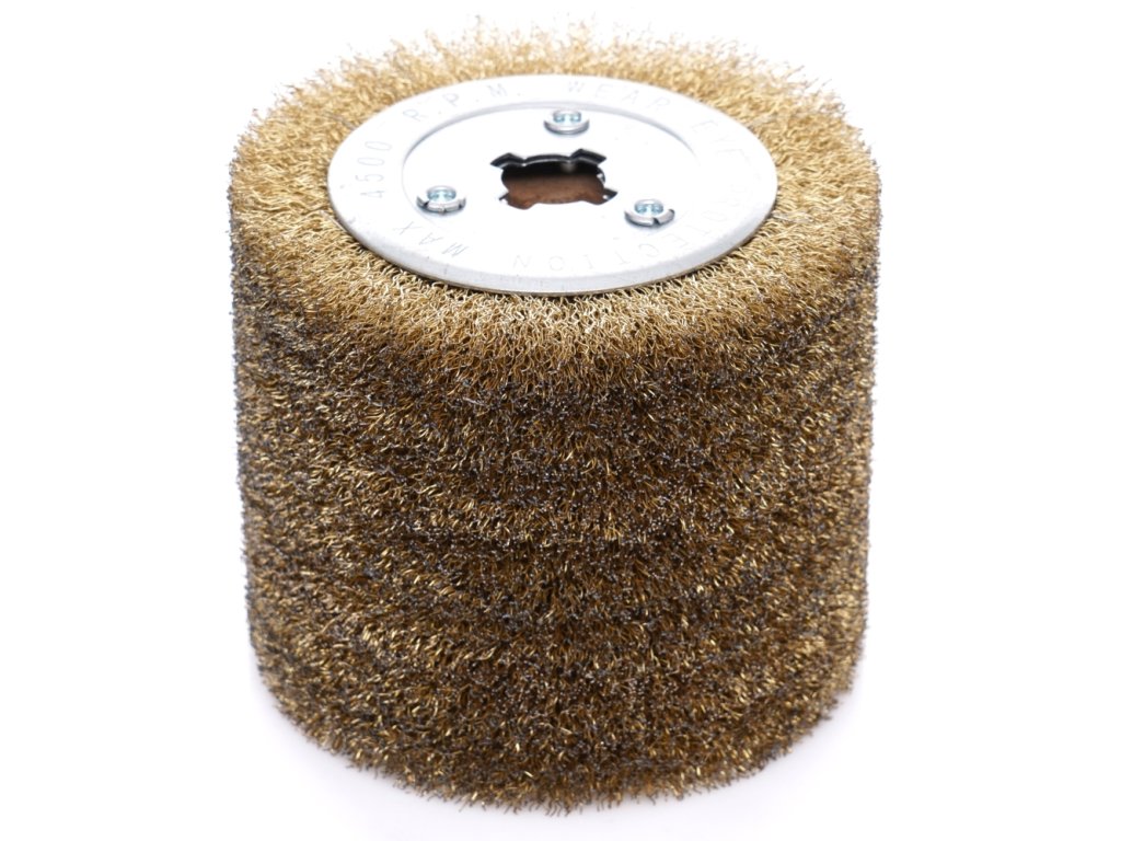 Válec - kartáč z mosazného drátu pro válcovou brusku (saténovačka) TAGRED pomáhá při odstraňování laků a barev, odstraňování všech nedokonalostí, jako je rez, otřepy, zabarvení, čištění dřevěných.