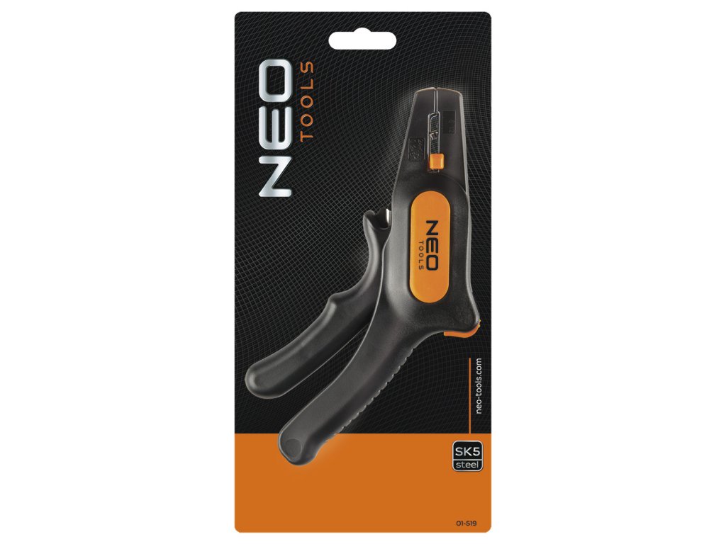 Automatický odizolovač vodičů NEO (ref. 01-519) pro vodiče s průřezem od 0,5 mm do 6 mm2 (24-10 AWG). Má nastavitelnou délku odizolování od 5 do 12 mm. Odolné tělo z nylonu vyztuženého skleněnými vlákny se zámkem spouště. Čelisti vyrobené z vysoce kvalitní legované oceli SK5 zaručují odolnost a ostrost střihače. Vybaveno řezačkou drátů v rukojeti pro dráty s maximálním průřezem 2 mm2. Značka NEO splňuje očekávání profesionálů.