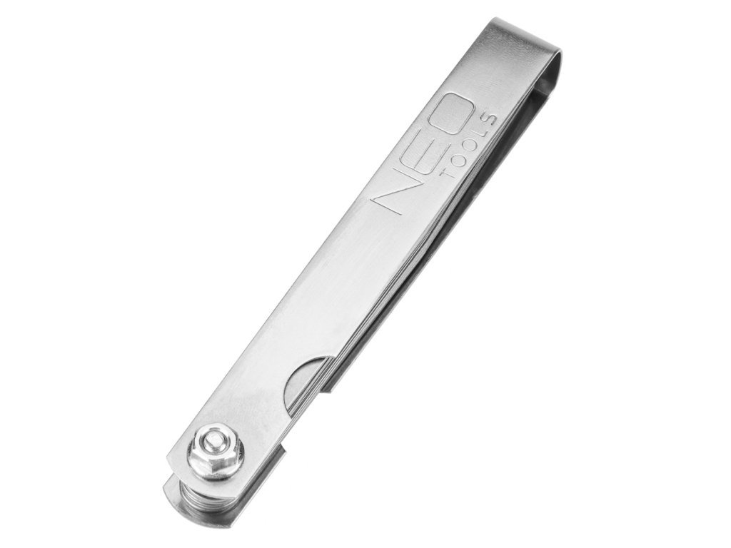 Štěrbinoměr značky NEO 11-190 je praktická a přesná spárová měrka, určená k měření velmi malých vzdáleností a vůlí tam, kde není možné použít běžné měřicí přístroje. Obsahuje 26 měřicích listů o tloušťce od 0,04 do 0,63 mm, přičemž naměřenou hodnotu lze pohodlně odečíst i po vyjmutí listu z měřené štěrbiny.