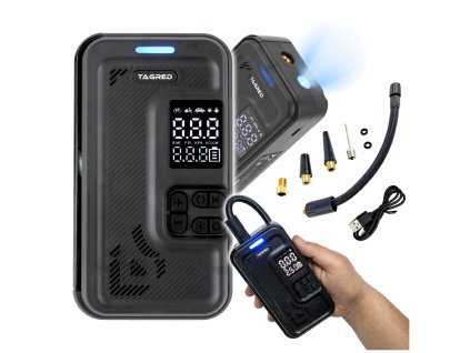 Portable mini compressor AirFox Go FOXIGY 10,3 BAR/150 PSI – kompaktní, výkonný a všestranný. Nafoukne pneumatiky auta, motorky, kola či míč, powerbanka s kapacitou baterie 2000 mAh. Součástí je pevný obal a kompletní příslušenství.