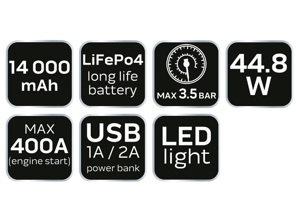 Jump startér, power banka - 14 Ah, kompresor 3.5BAR, baterka 11-997