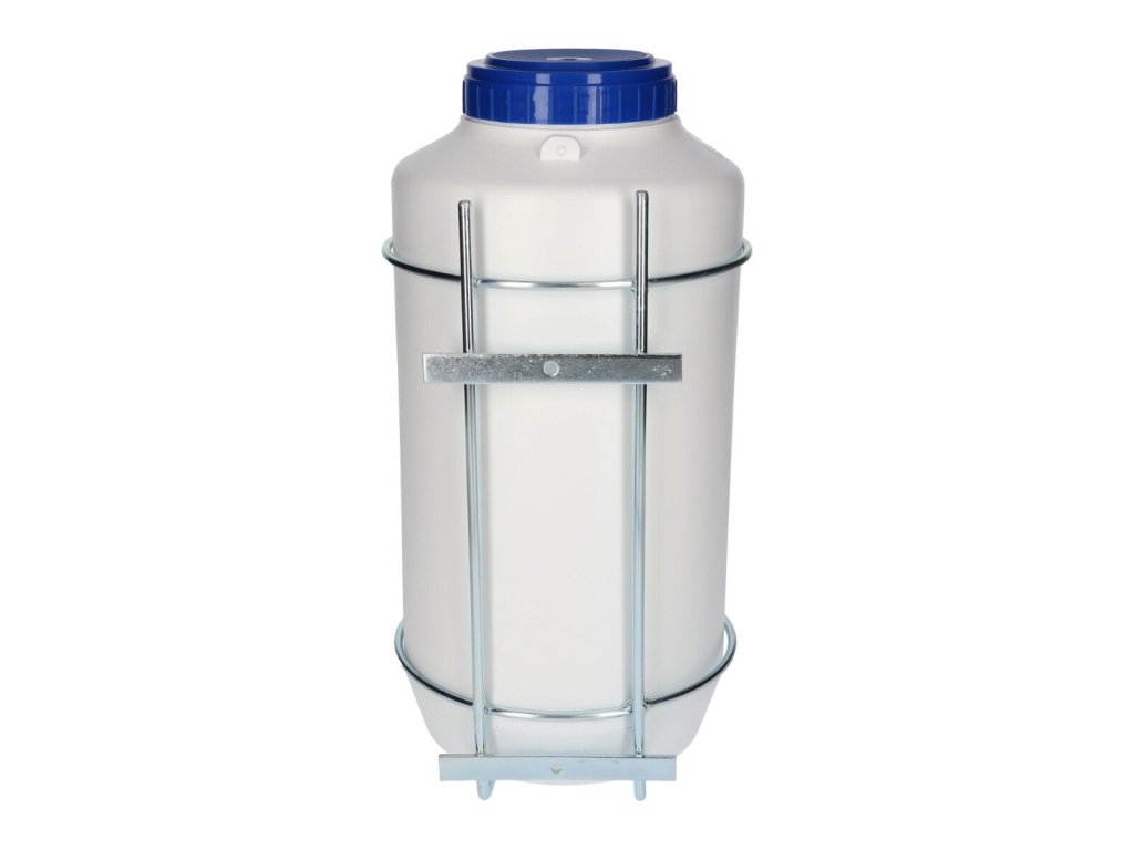 Koš z chromované oceli šetří místo a zabraňuje převrhnutí nádoby. Vhodné pro 4l balení.