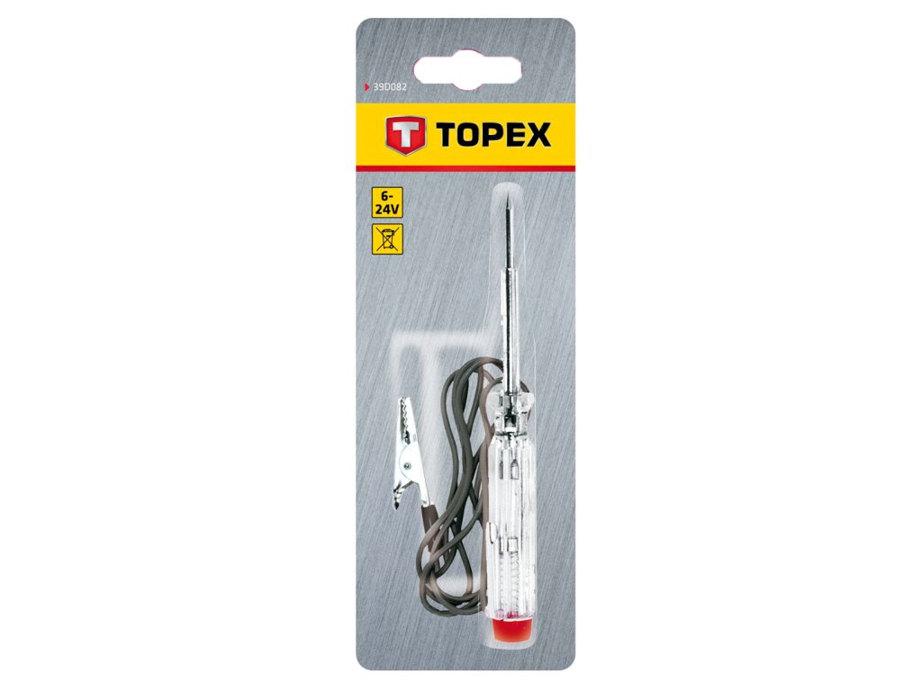 TOPEX tester pro montáž do auta (ref. 39D082) 140 mm dlouhý. Umožňuje detekci toku napětí v rozsahu 6 - 24 V. Má kabel se zástrčkou pro tester a žabku, která usnadňuje měření. Tvarovaná rukojeť se pohodlně drží v ruce, což zvyšuje pohodlí při práci. Soulad s evropskými bezpečnostními normami zaručuje certifikát CE. Značka TOPEX je určena pro domácí kutily.
