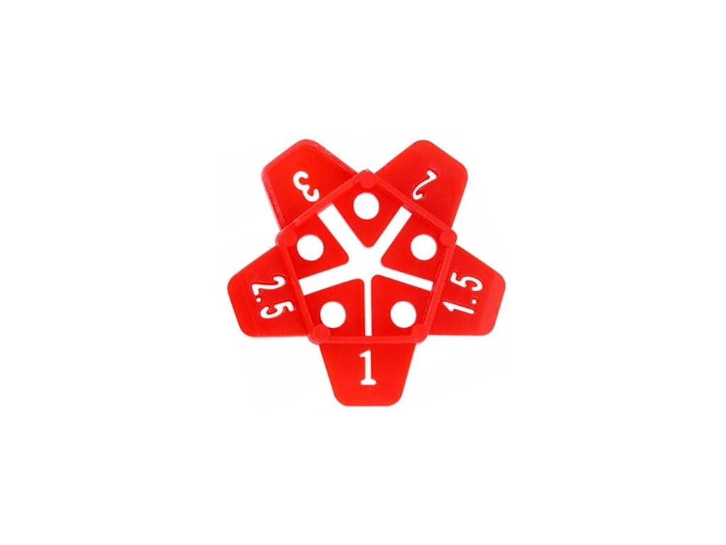 : dlaždic, obkladů a jiných podlahových materiálů TAGRED umožňuje rychle a snadno dosáhnout spárování s požadovanou tloušťkou. Hrany různé šířky umožňují přizpůsobit spáry vlastním potřebám a výřezy uvnitř hvězdičky znázorňují skutečnou šířku spárovací hmoty.