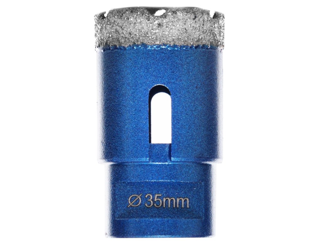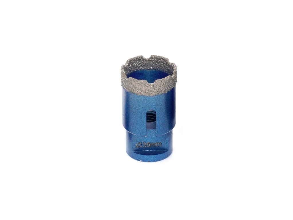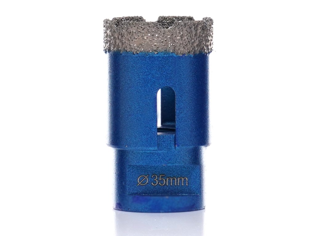 Samochladící a výkonné diamantové vrtáky pro suché vrtání, určené pro vrtačky a úhlové brusky, umožňují čisté vrtání do všech druhů dlaždic bez použití vodního chlazení. Profesionální diamantové korunky jsou osazeny technologií vakuového pájení. Jsou ceněny pro rychlost vrtání do velmi tvrdých materiálů. Boční ventilační otvory otvíračů urychlují vrtání a odstraňování materiálu.
