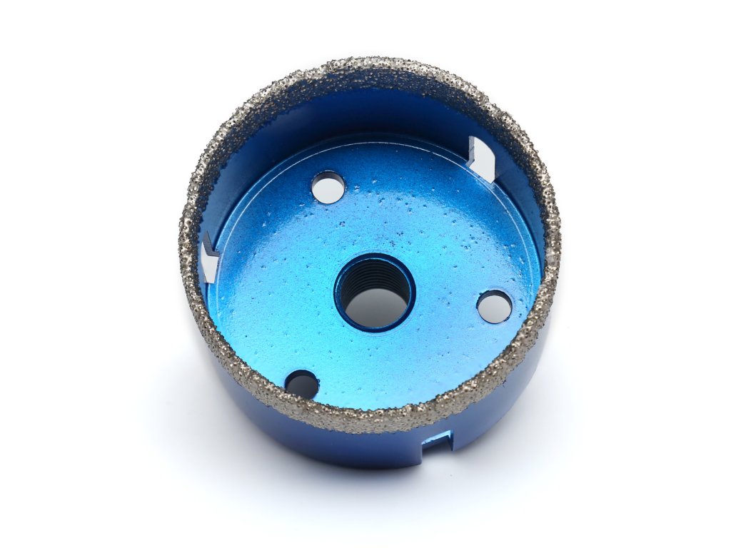 Samochladící a výkonné diamantové vrtáky pro suché vrtání, určené pro vrtačky a úhlové brusky, umožňují čisté vrtání do všech druhů dlaždic bez použití vodního chlazení. Profesionální diamantové korunky jsou osazeny technologií vakuového pájení. Jsou ceněny pro rychlost vrtání do velmi tvrdých materiálů. Boční ventilační otvory otvorů urychlují vrtání a odstraňování materiálu.