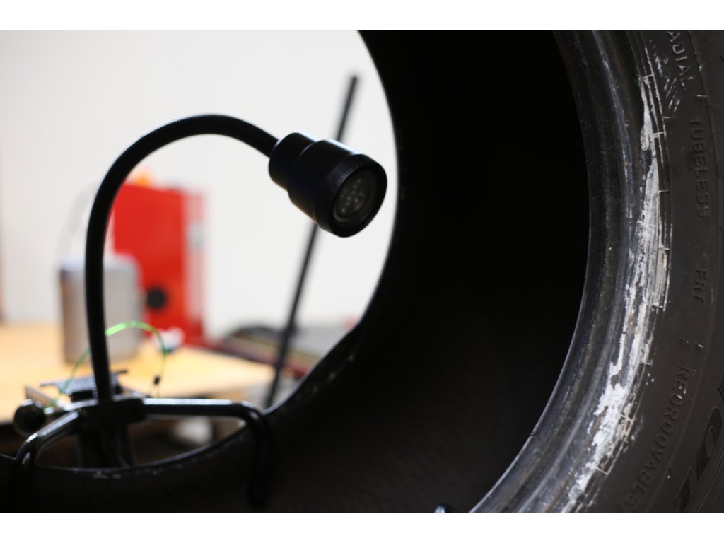 - Nastavitelné pracovní světlo – zajišťuje optimální osvětlení pracovní plochy při kontrole a opravě vnitřní strany pneumatiky.