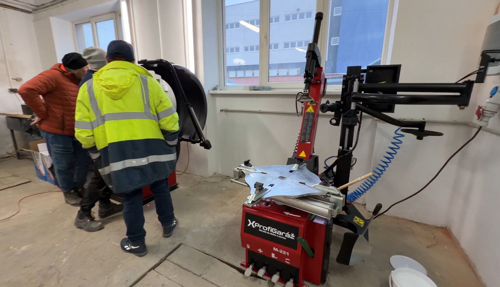 Zákazník chtěl dílnu „A po Z“ – od dodání techniky až po zaškolení. Za jediný den naši čtyři technici přivezli vybavení, zrealizovali rozvod vzduchu z plastových trubek Ø 25 mm po celé dílně is vývody na nářadí a zároveň zprovozněny kompresor, prezúvačku s pomocným ramenom a vyvažovačku.