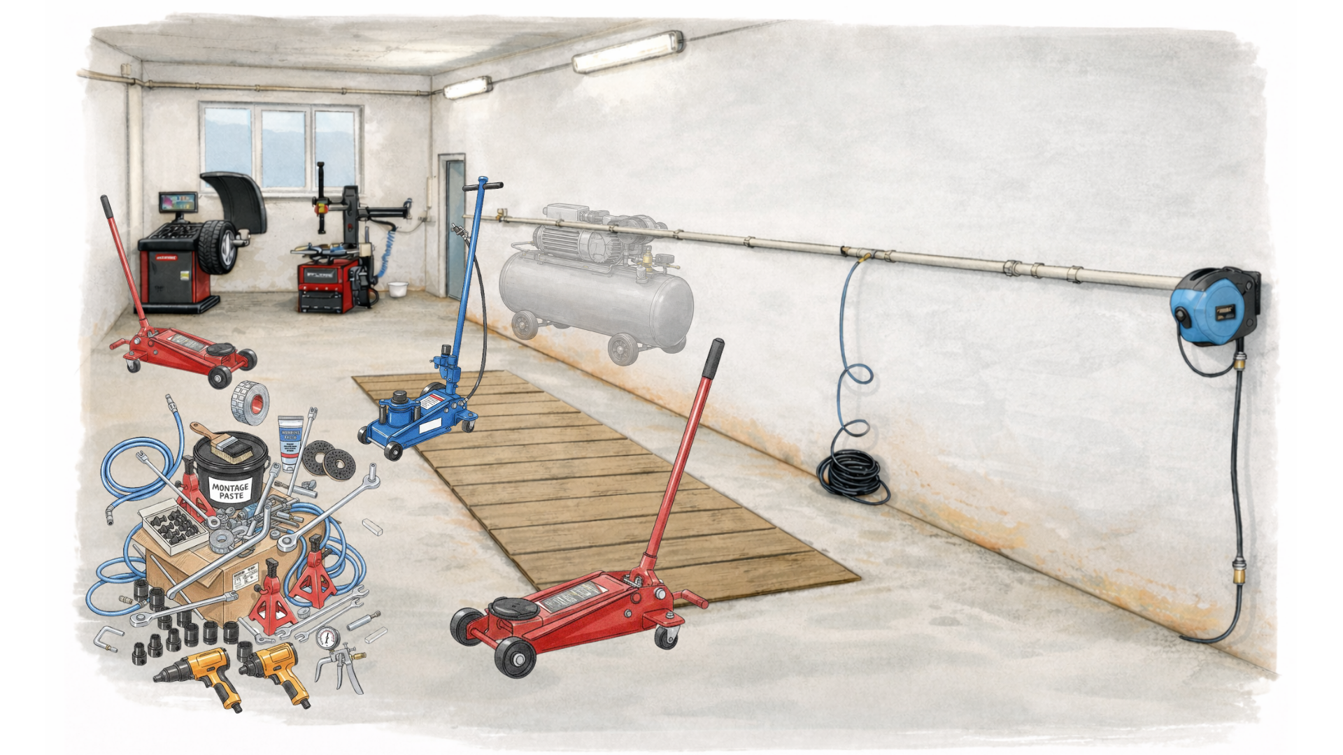 Pokud máte prostor a chcete si udělat pneuservis nebo dílnu, umíme vám dodat a zrealizovat kompletní řešení na klíč: