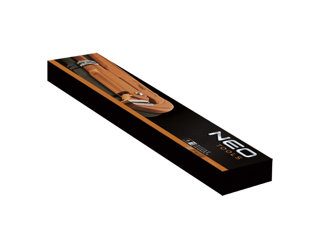NEO klíč na trubky typ 90 (ref. 02-130), délka 320 mm, otevření čelistí 40 mm/1,0". Vyrobeno v souladu s normou DIN5234. Kováno z vysoce kvalitní chrom-vanadiové oceli, s broušenými a leštěnými čelistmi se rukojetí. usnadňuje pevné uchopení. Kvalitu nástroje potvrzuje certifikát TÜV a 25letá záruka výrobce.