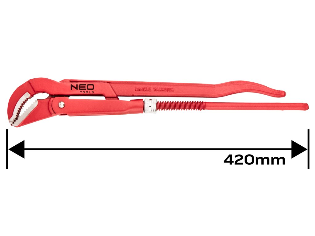 Klíč na trubky NEO typu "45" (ref. 02-427) o délce 420 mm. Určeno k odšroubování a utažení potrubí a ventilů. Díky drážkované vnitřní straně čelistí je uchopení kruhového profilu pevné. Vyrobeno z odolné chrom-vanadiové oceli, která zaručuje dlouhou životnost nástroje. Značka NEO splňuje očekávání profesionálů.