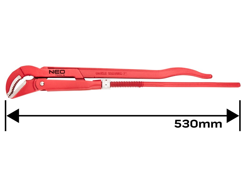 NEO klíč na trubky typu "45" (ref. 02-428) o délce 530 mm. Určeno k odšroubování a utažení potrubí a ventilů. Díky drážkované vnitřní straně čelistí je uchopení kruhového profilu pevné. Vyrobeno z odolné chrom-vanadiové oceli, která zaručuje dlouhou životnost nástroje. Značka NEO splňuje očekávání profesionálů.