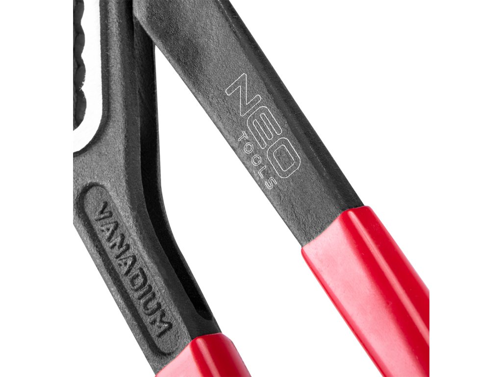 - Kleště s rozsahem čelistí 0 - 38 mm jsou vyrobeny z kvalitní chrom-vanadiové oceli a ergonomická rukojeť je potažena univerzálním a odolným plastem
