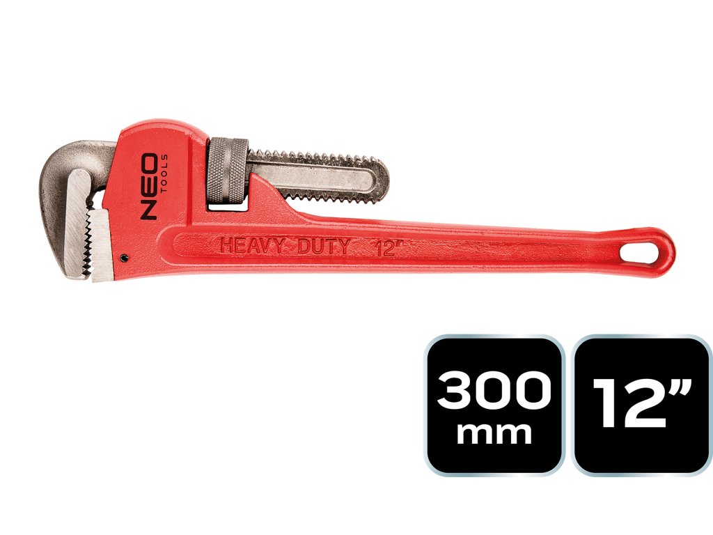klíč na trubky NEO stillson (ref. 02-415) s délkou 300 mm a rozsahem do 55 mm. Určeno k odšroubování a utažení potrubí a ventilů. Díky drážkované vnitřní straně čelistí je uchopení kruhového profilu pevné. Odolné kalené čelisti s širokým průřezem umožňují zvýšit točivý moment. Značka NEO splňuje očekávání profesionálů.