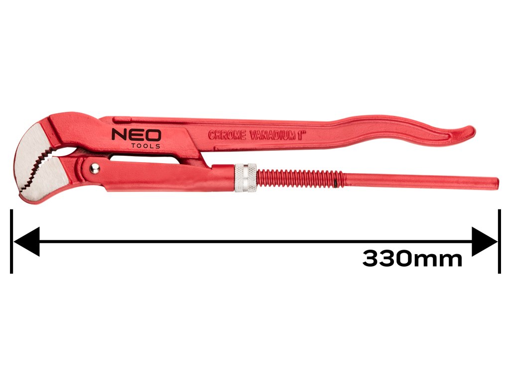 NEO klíč na trubky typu "S" (ref. 02-420) o délce 330 mm. Určeno k odšroubování a utažení potrubí a ventilů. Díky drážkované vnitřní straně čelistí je uchopení kruhového profilu pevné. Vyrobeno z odolné chrom-vanadiové oceli, která zaručuje dlouhou životnost nástroje. Značka NEO splňuje očekávání profesionálů.