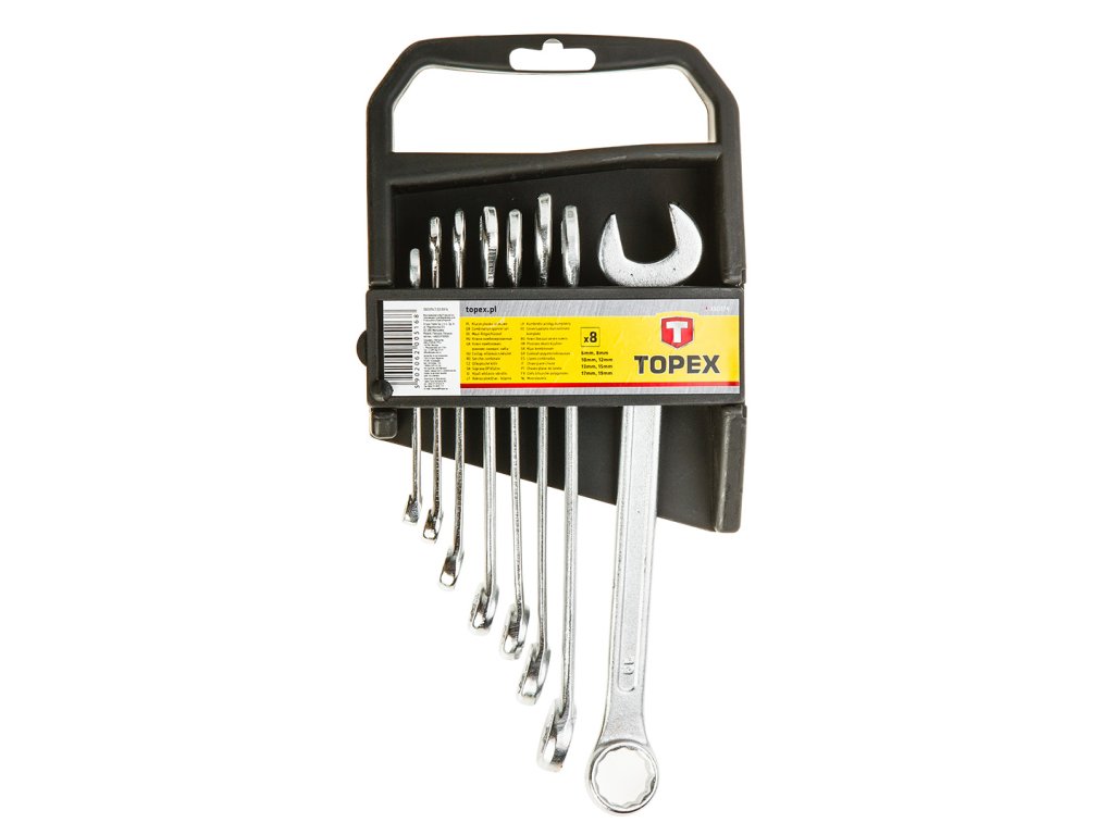 Sada očkoplochých klíčů, která obsahuje sadu klíčů v nejpopulárnějších velikostech. Praktické pouzdro s možností zavěšení na zeď. Užitečné pro všechny druhy mechanických prací. Značka TOPEX je určena pro domácí kutily.