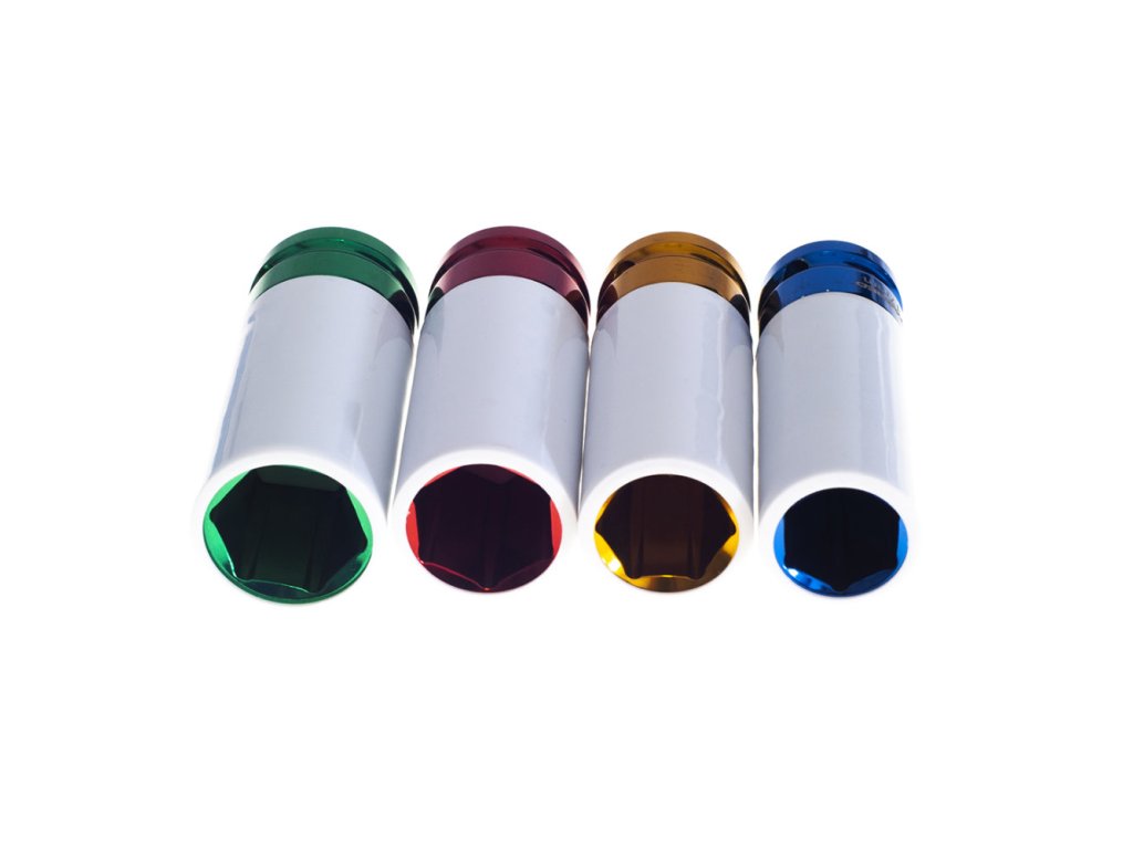 Vysoká kvalita materiálů a zpracování, profesionální set, ochranný návlek z měkkého plastu – chrání ráfek před poškozením potahů. Tenké stěny nástavců - umožňují odšroubovat šrouby v těsných prostorách hliníkových ráfků. Bezpečnostní zařízení usnadňující uvolnění odšroubovaného uzávěru a šroubu. Hroty hlavic jsou ukončeny chromovým potahem v různých barvách, což usnadňuje výběr – identifikace velikosti.