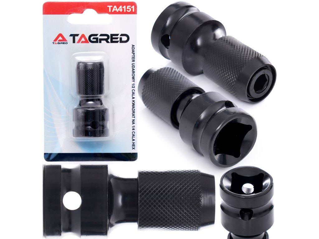 Určen pro nárazové, akumulátorové a pneumatické šroubováky, adaptér TAGRED má tvrzené jádro, které zajišťuje nejvyšší odolnost. Výhodou průchodky je pružná torzní zóna, která absorbuje maximální točivý moment a omezuje poškození (pouze u koncovek typu TORSION).