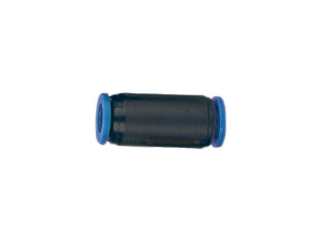 Spojka je vyrobena z kvalitní mosazi a plastu, což zaručuje její dlouhou životnost a spolehlivost. Funguje jednoduše – stačí zasunout hadici do otvoru, kde se automaticky pevně uchytí pomocí drobných zoubků. Pokud potřebujete hadici vyjmout, stačí zmáčknout modrý prstenec kolem otvoru. Spojka je vybavena na obou koncích auto konektorem pro spojování hadic rovného průměru.