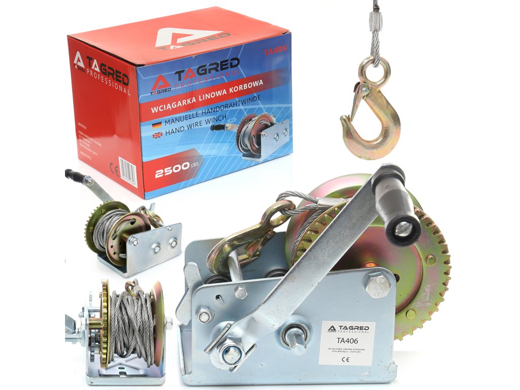 Lanový naviják s klikou 1134 kg 2500 LBS, lano 10 m TA406
