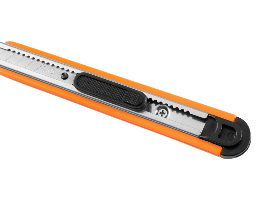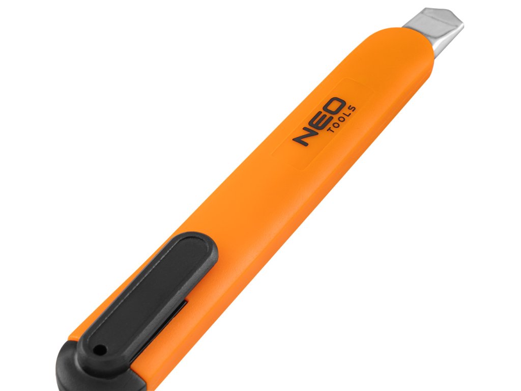 NEO skládací nůž pro použití s 9 mm širokou čepelí. Velmi užitečné pro mechanické práce a kutilství. Tělo je vyrobeno z kvalitního plastu. Kovová vodící lišta pro dlouhou životnost. Díky malým rozměrům se snadno skladuje a přepravuje. Značka NEO splňuje očekávání profesionálů.