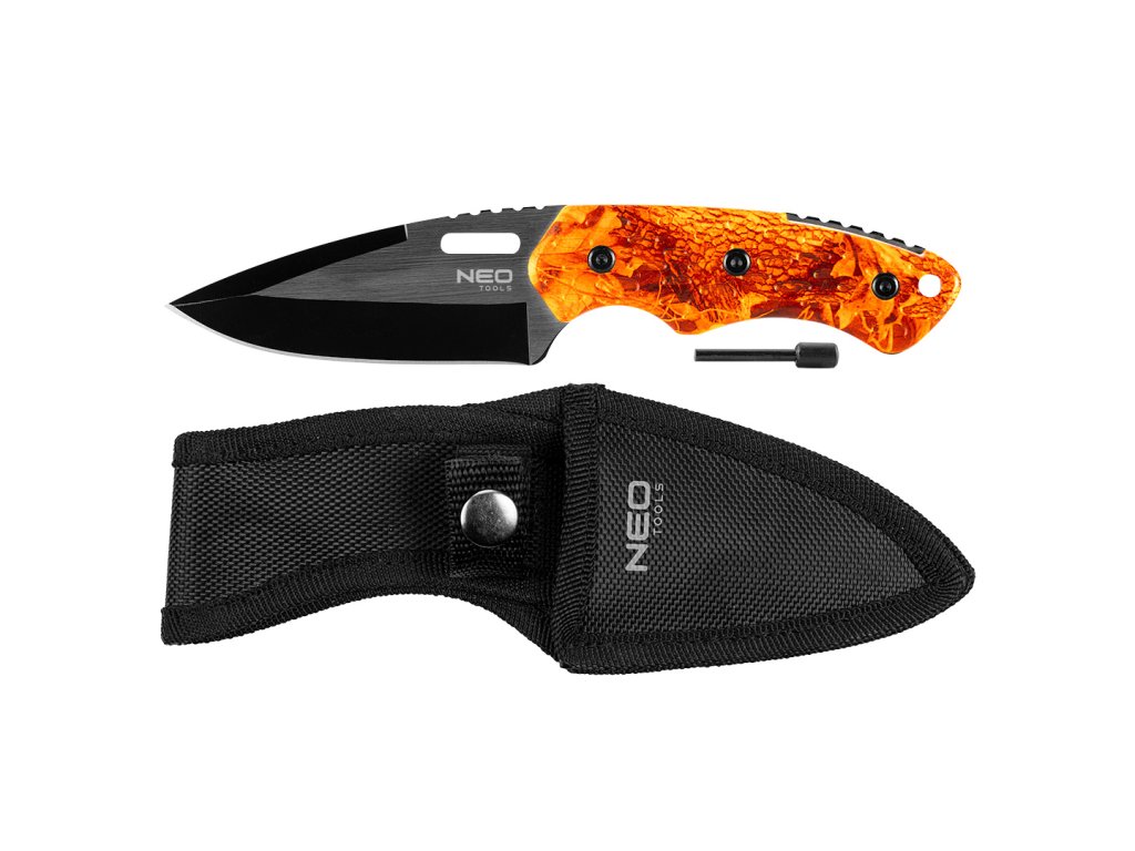 Taktický nůž značky NEO má celkovou délku 20 cm z toho čepel činí 9 cm. Při výrobě čepele byla použita kvalitní nerezová ocel, odolná vůči mechanickému poškození. Rukojeť je vyrobena z hliníku, což poskytuje pevné uchopení a vysokou odolnost. Nůž je vybaven křesadlem, které je nenápadně ukryto v rukojeti. S jeho pomocí rozložíte oheň jednoduchá za pár vteřin.