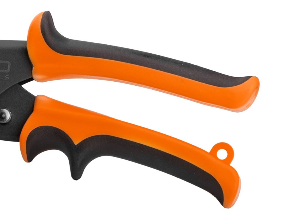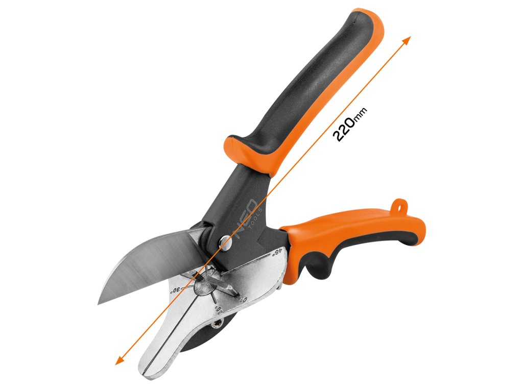 Úhlové nůžky délka 220 mm, dvousložková rukojeť, ostří ocel SK5, hliníkové tělo, rozsah řezu 22.5, 45, 90 stupňů