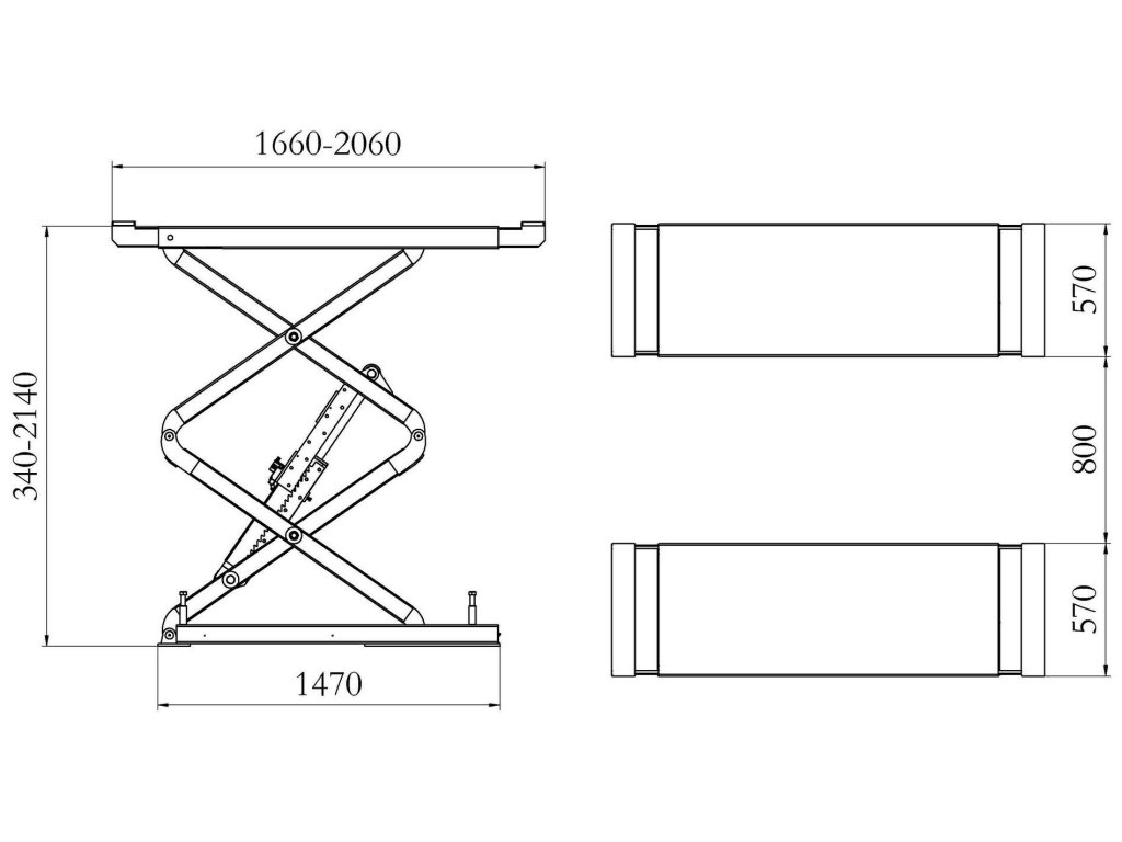 Nůžkový mechanismus umožňuje kompaktní uložení zvedáku v podlaze, přičemž plošiny poskytují stabilní podporu pro vozidlo. Jednoduché ovládání a mechanický bezpečnostní zámek s automatickým odemykáním zvyšují komfort a bezpečnost práce.