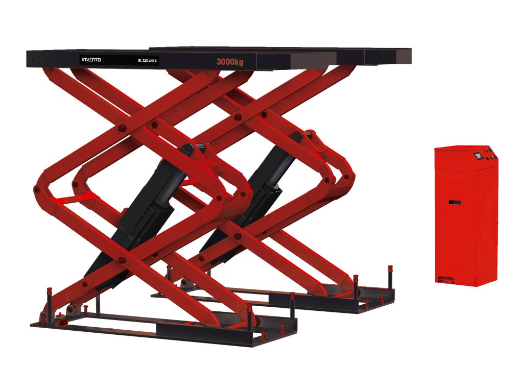 INVENTO SL 230 LNI S je zvedák určený k instalaci do podlahy, který poskytuje i možnost vstupu s nízkými auty bez použití nájezdů a šetří místo v dílně
