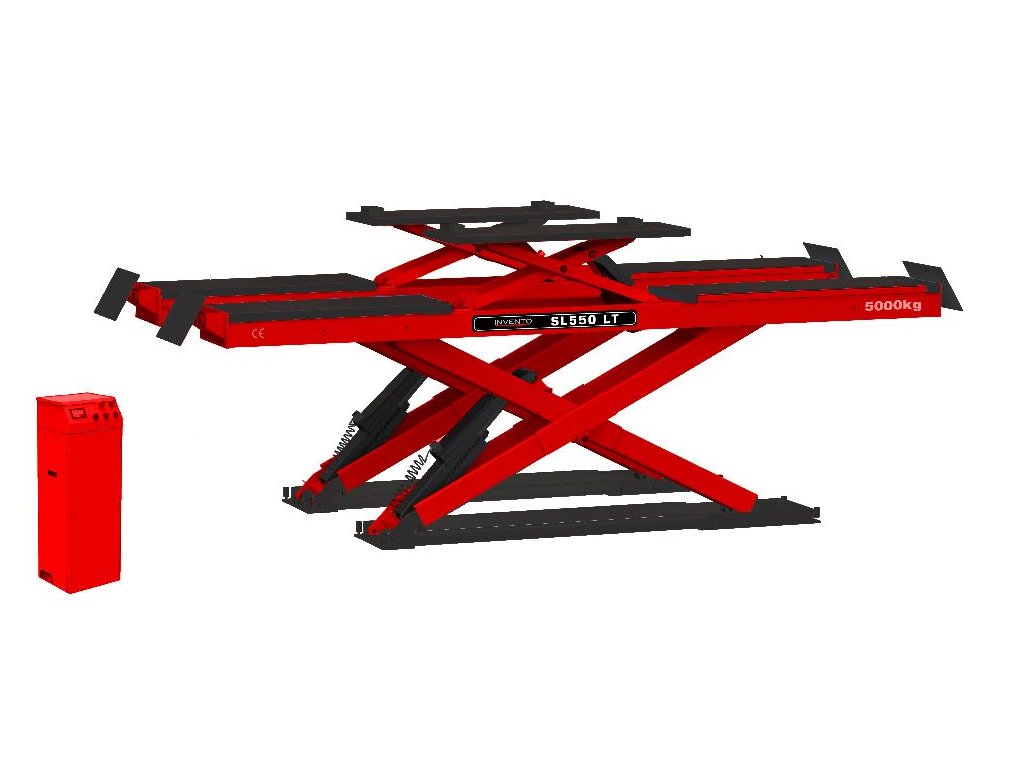 INVENTO SL 230 LNI je zvedák o nosnosti 5 tun, který se používá pro měření geometrie a má speciálně zapuštěná místa pro otočné talíře a expanzní desky.