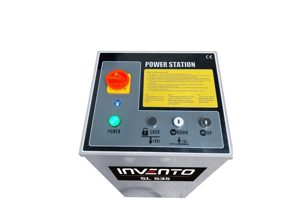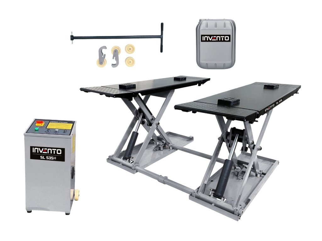 Invento SL S35H je podlahový zvedák určený ke zvedání vozidel s hmotností do 3,5 t až do výšky 1,2 m, napájený zdrojem 230V. Představuje ideální řešení pro pneuservisy a autoservisy, kde usnadňuje práci při výměně brzdových destiček či kotoučů, hlavně při servisu širších aut kvůli nastavitelným plošinám.