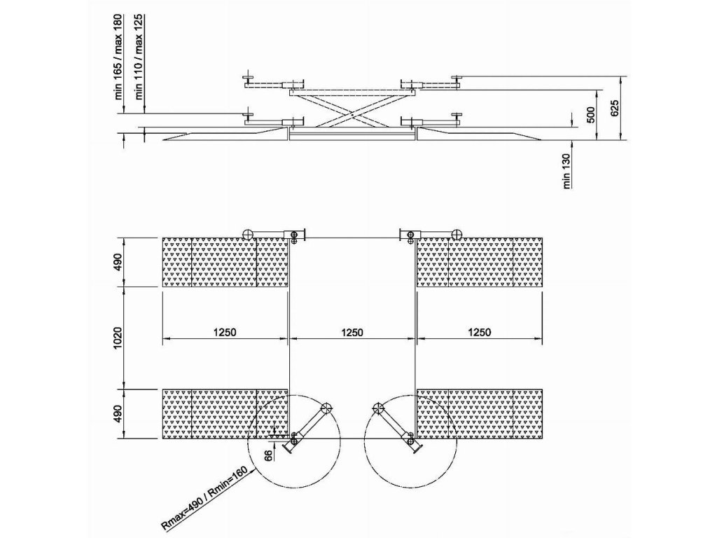 Výška zdvihu dvousloupového zvedáku: | 62,5cm |