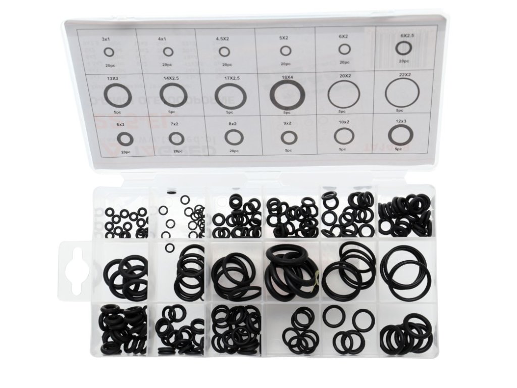 Sada těsnících kroužků – gumek – 225 ks v kazetce