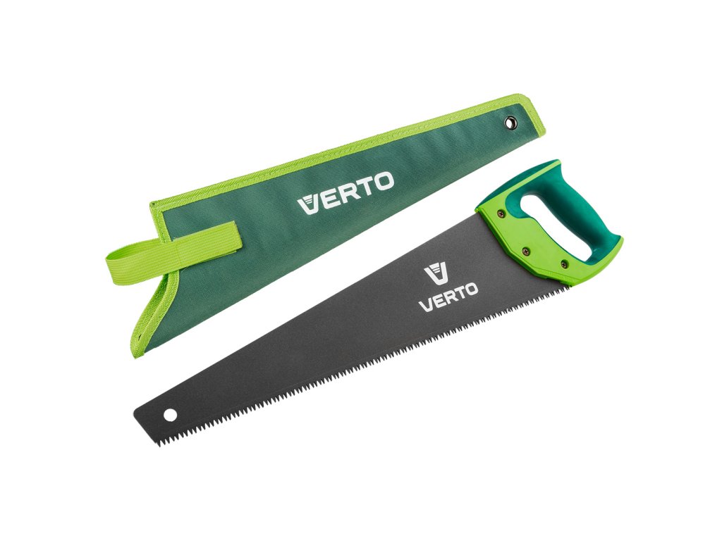 Ocasní pila VERTO (ref. č. 15G102) o délce 450 mm. Třístranné broušení a kalení zubů významně snižuje odpor při řezání a čepel pokrytá PTFE usnadňuje podélné řezání dřeva. Výkonné ozubení 7 zubů na palec zlepšuje práci. Ergonomická rukojeť ze dvou materiálů umožňuje přesné vedení a díky protiskluzové vrstvě nástroj nevyklouzne z ruky, což zajišťuje vysoký komfort práce. K pile je připojen obal z pevného materiálu, který chrání pilové listy a usnadňuje přepravu a skladování nástroje.