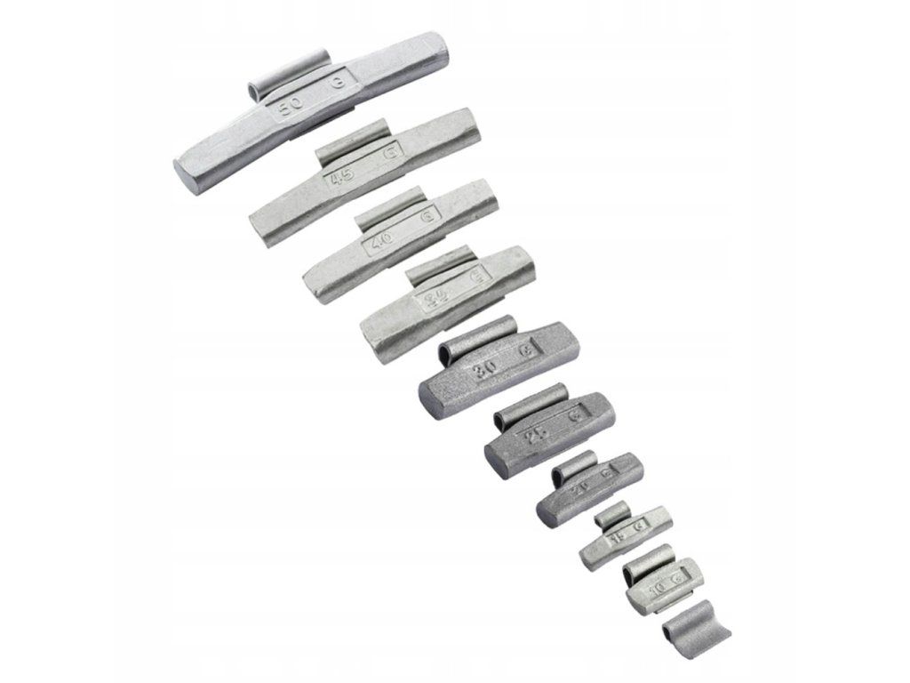 Výhodná sada ocelových vyvažovacích závaží 5–50 g pro hliníkové disky. Kompletní řešení bez výběru jednotlivých váh.