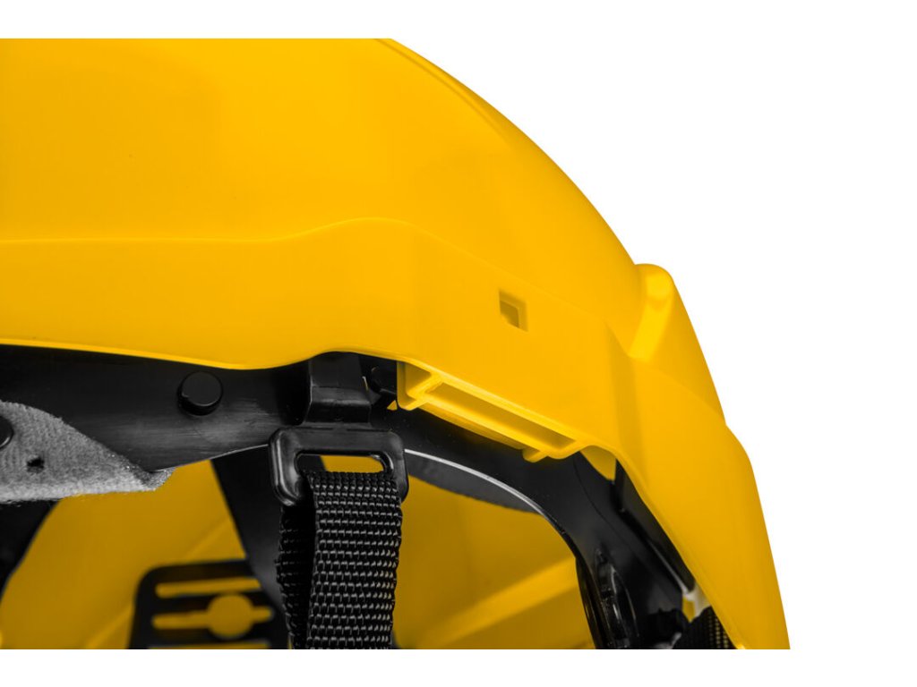 Průmyslová přilba pro práci ve výškách, žlutá 97-210 od společnosti NEO je přilba ve žluté barvě určená pro manuální pracovníky. Výrobek s nízkou hmotností 430 g a polskou výrobou nabízí vysokou odolnost při pracích ve výškách. Je vyrobena z odolného plastu ABS a obsahuje 10 ventilačních otvorů, které umožňují volné proudění vzduchu uvnitř přilby. Přilba se skládá z otočného postroje, pevné skořepiny přilby a soupravy popruhů (bradový popruh připevněný ve 4 bodech), nosného popruhu (připevněný ke skořepině v 6 bodech) a popruhu s pohodlným nastavovacím mechanismem, který umožňuje měnit parametry pomocí snadno ovladatelného g. Helma má také velurovou vyměnitelnou potní vložku. Výrobek má široký rozsah nastavení (od 51 do 63 cm). Může se používat při velmi nízkých teplotách (-30 °C) i v horkém počasí. Přilba je klasifikována jako ochranná třída II. Odolnost vůči bočním deformacím a nárazům umožňuje jeho použití i ve stavebnictví, průmyslu a lesnictví. Vynikající ochrana pro pracovníky v extrémních podmínkách.