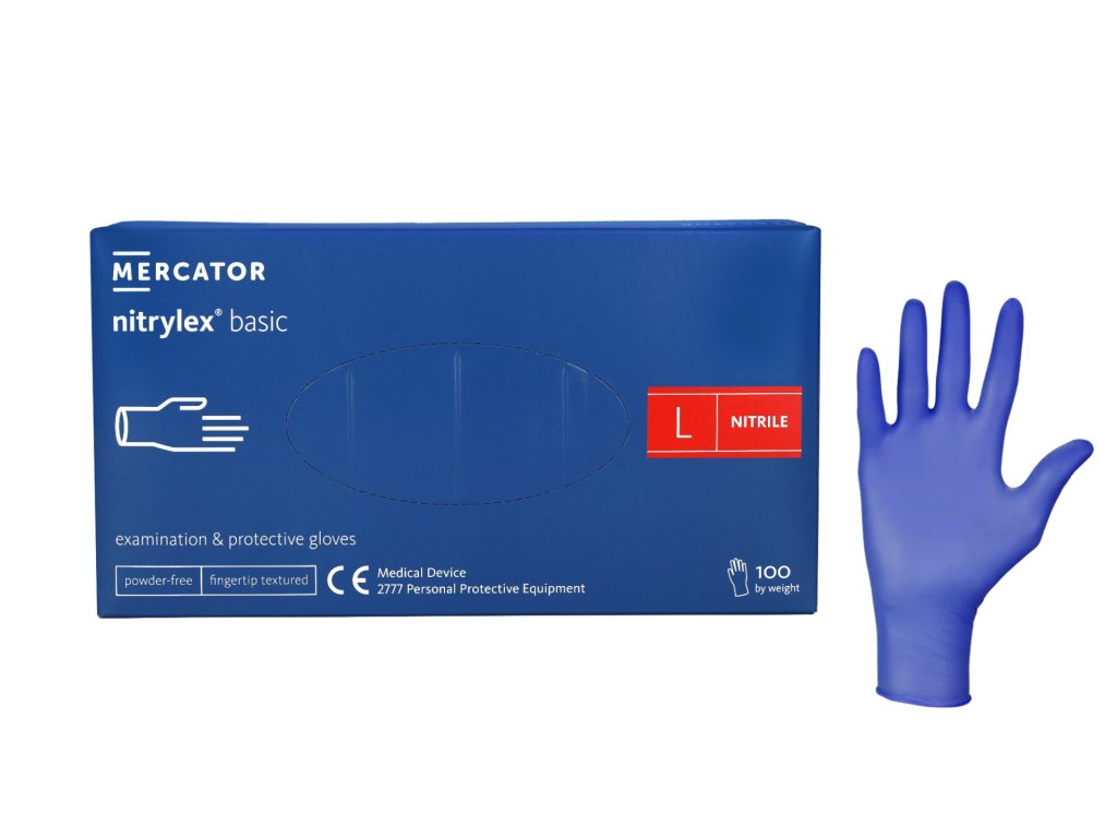 MERCATOR Nitrylex BASIC tmavomodré ochranné rukavice, velikost L, 100ks/balení