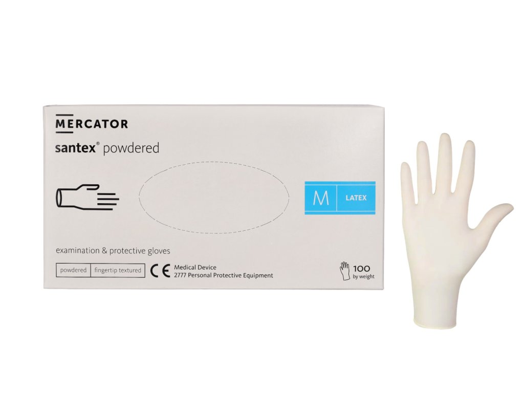 MERCATOR Santex pudrové rukavice, latexové, krémové, velikost M, 100ks/bal.