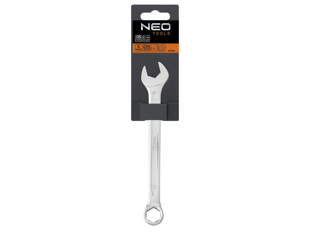 Šestihranný kroužkový klíč NEO. Otevřená část klíče má profilované čelisti, které během práce poskytují až čtyři body kontaktu se šestihranným šroubem nebo maticí. Lepší uchycení otevřené části znamená menší riziko sklouznutí nástroje. Díky čtyřem kontaktním bodům lze vyvinout větší sílu bez poškození matice nebo hlavy šroubu (i když je obrobek částečně zničen nebo nekvalitní). Šestihranný kroužek zajišťuje dokonalé přilnutí ke šroubu nebo šestihranné matici (eliminuje riziko poškození jejího povrchu) a umožňuje bezpečné použití síly. Díky své velikosti a tenkosti umožňuje klíč práci v prostorách nepřístupných pro jiné nástroje. Vyrobeno v souladu s normou DIN 3113, což zaručuje kvalitu, použitelnost a spolehlivost nástroje. Vysoce kvalitní chrom-vanadiová ocel zaručuje dlouhou životnost. Leštěný povrch pro snadné čištění. Kompletní sortiment 26 velikostí klíčů (6 – 32 mm). Spolehlivost výrobku potvrzuje 25letá záruka. Značka NEO splňuje očekávání profesionálů.