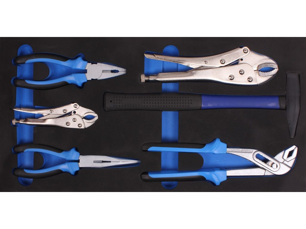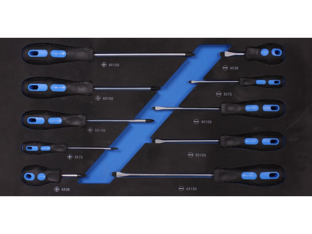 Profesionální sada z chrom-vanadiové oceli v kovové skříni se třemi šuplíky na klíč.