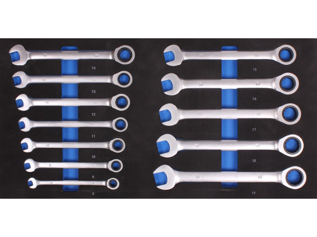 - Komplet plochých a kulatých klíčů s ráčnou 12 ks