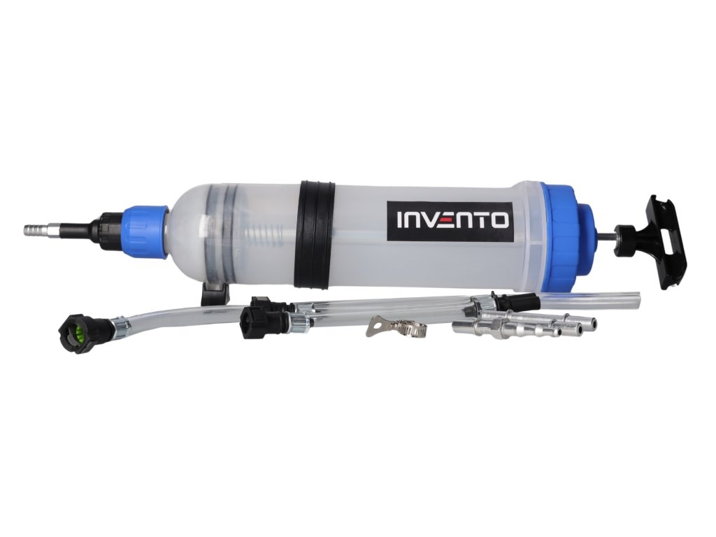 Model: INVTO08 Capacity: 1500 ml Material: Plastic Dimensions: 570 × 110 × 110 mm Set contents: 1x Manual fluid extractor (1500 ml) 1x Hand pump 1x Oil tube 3x Sockets 3x Plugs 1x Clamp 1