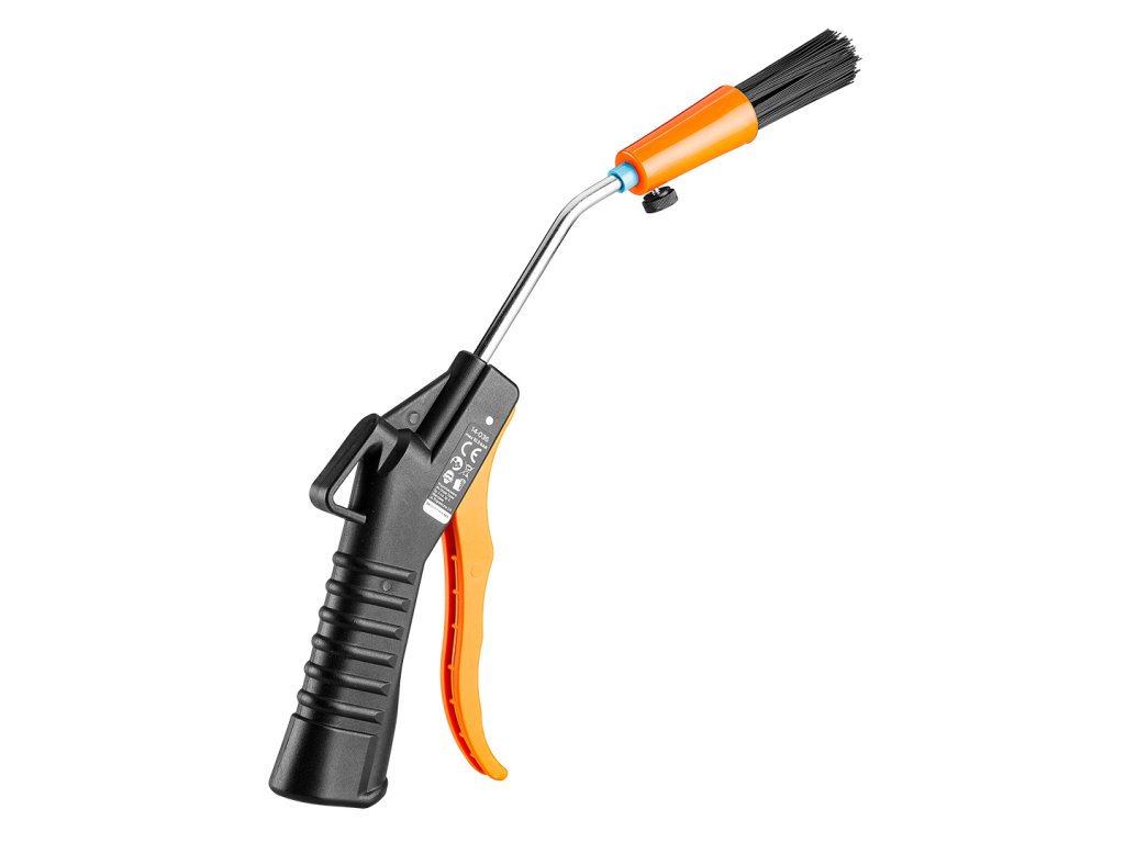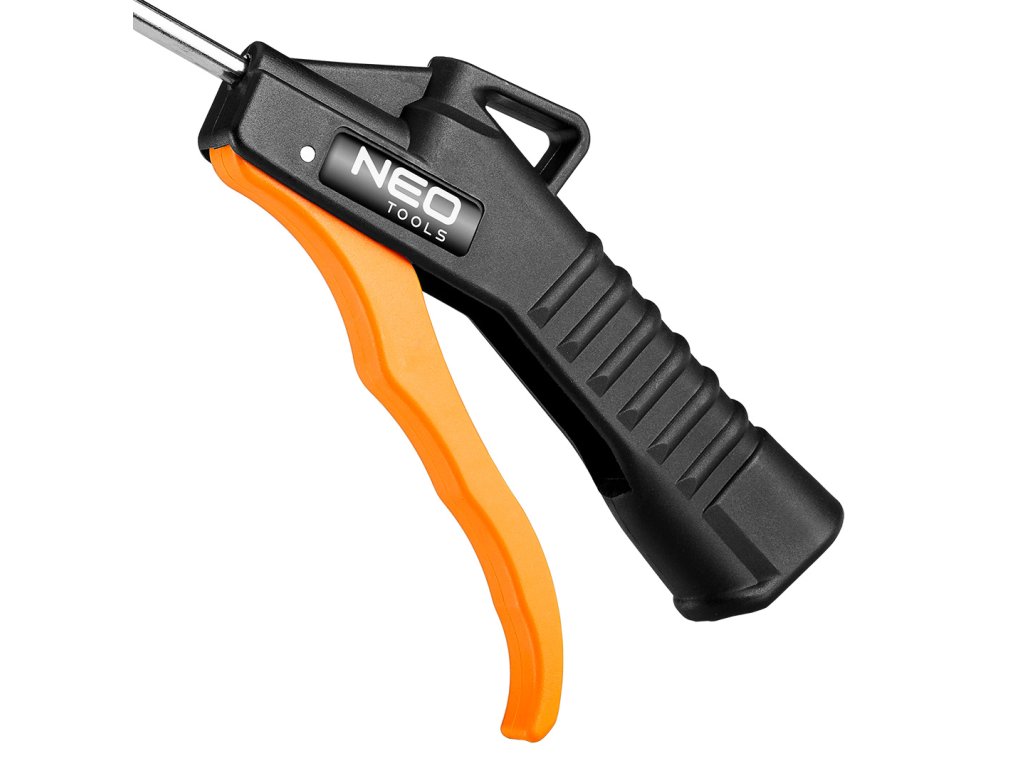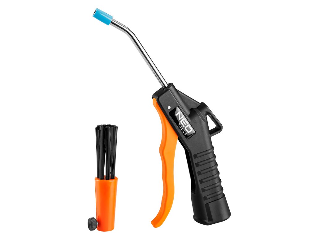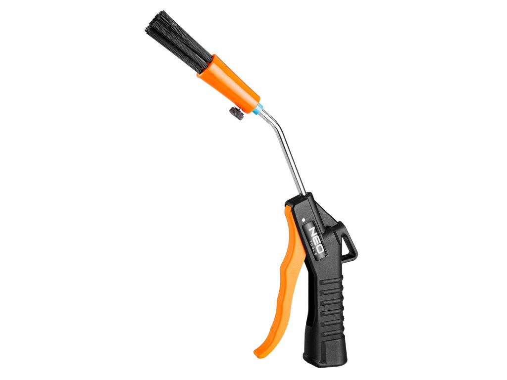 Foukací pistole s kartáčem 14-036 od společnosti NEO je nástroj, který pracuje při maximálním tlaku 10,5 baru. Je vybaven standardním 1/4" konektorem. Hlučnost nástroje dosahuje 97 dBA. Jeho hmotnost je 1,1 kg. Pistole má certifikát CE. Doporučuje se na odstraňování prachu, třísek a nečistot pomocí stlačeného vzduchu. Bude nepostradatelný v dílnách a servisech.