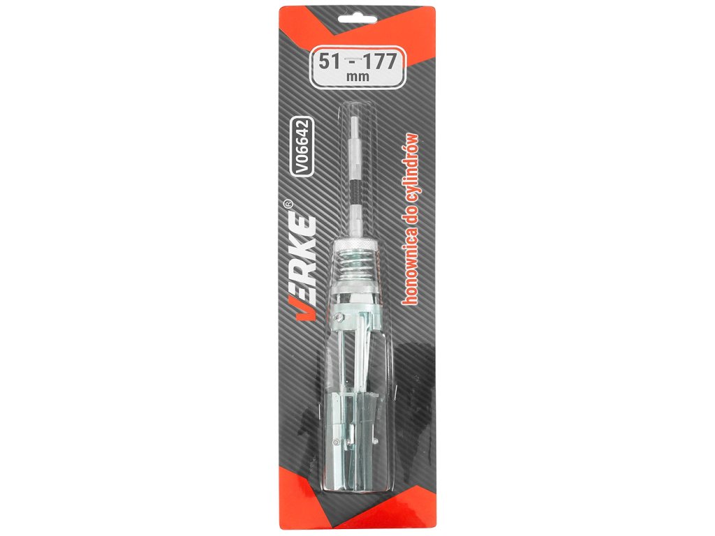 Tříramenný honovací přípravek na broušení válců 51-177mm, zakončený třemi brusnými kameny s délkou 76mm. Nástroj na honování válců má nastavitelný tlak brusných kamenů. Přípravek na honování / broušení válců se hodí na jakoukoliv vrtačku.